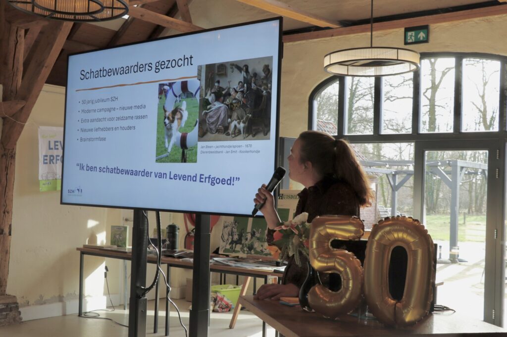 Op 7 februari kwamen ruim tachtig vertegenwoordigers van rasorganisaties, erkende centra en andere betrokkenen samen bij De Beekdalhoeve in Renkum voor het jaarlijkse Zeldzame Rassen Overleg. Deze editie stond in het teken van een bijzonder jubileum: 50 jaar Stichting Zeldzame Huisdierrassen (SZH). Onder het motto vier eeuwen levend erfgoed werd teruggeblikt op het verleden én vooruitgekeken naar de toekomst van oorspronkelijke Nederlandse huisdierrassen.
